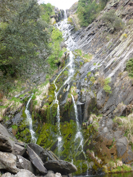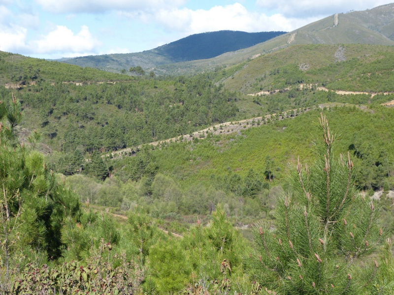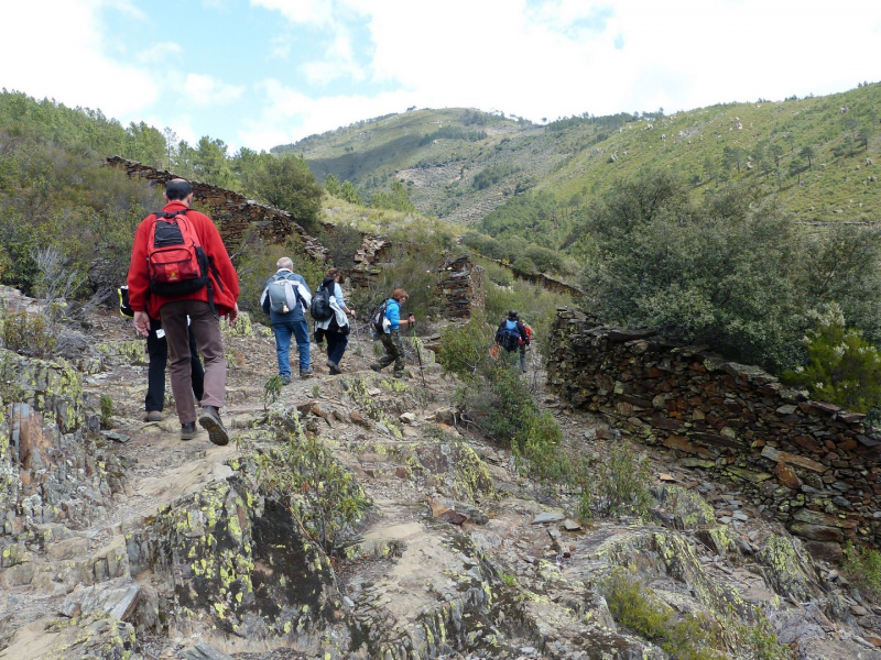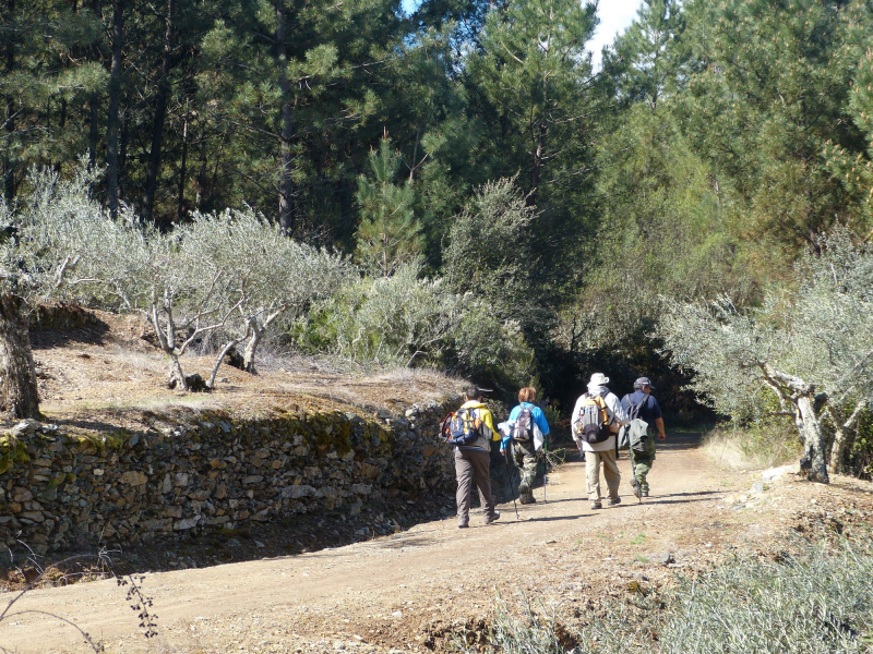 Pasando por la parte alta del “Chorritelo” se llega a un collado, a partir del cual aumenta la vegetación, pinos, castaños y helechos arropan el sendero hasta alcanzar la cuerda de las sierra que separa las Hurdes de la comarca de Sierra de Gata, aquí denominada Los Llanos, seguimos a la derecha durante 1 km., para descender hasta Robledillo de Gata.