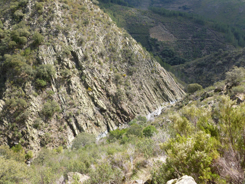 Desde allí se remonta un tramo superado por una piscina natural y cruzando un puente, a la derecha un camino se dirige al “Chiorritelo” (3 km. ida/vuelta), salto de agua que da fama a la localidad, la GR-10 prosigue por la izquierda por un camino empedrado y asciende en zigzag bordeando por el este el pico “Vela” (1.075 mts.).