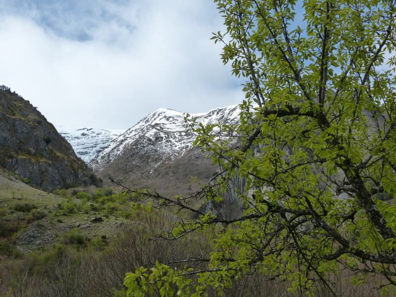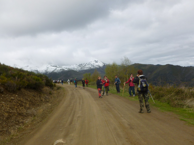 A mitad de camino se pasa frente a Montes de Valdueza y a la izquierda las montañas, con las cumbres con la nieve de los últimos días, se mostraban con una belleza radiante.