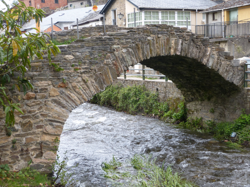 Seguimos en continuo descenso por el Valle del Oza. Al salir del pueblo y justo antes de un puente, se coge un camino a la izquierda, que sigue el curso del río, y nos lleva en unos 2 Km. a la localidad de Valdefrancos de Valdueza, bonito pueblo con iglesia del siglo XVIII y un curioso puente medieval con arco de medio punto, por donde cruzaban el Oza los monjes en su camino hacia el monasterio de Montes de Valdueza y Peñalba de Santiago.