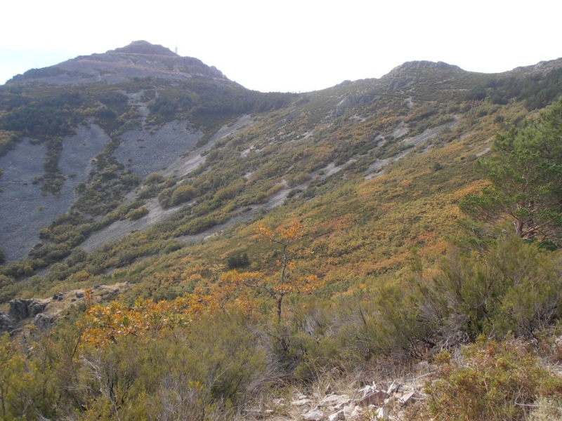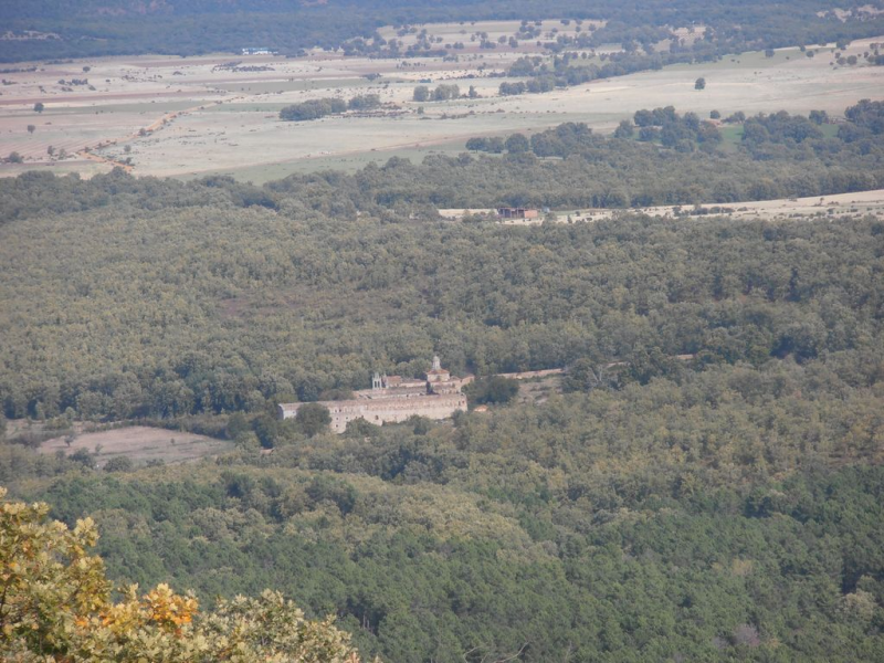 El camino transcurre entre bosques de robles y pinos, ascendiendo suavemente en un primer tramo, hasta encontrarnos con una pista que atravesaremos, para entrar en un espeso pinar e iniciar una fuerte ascensión que serpentea hacia la peña y que alcanza su mayor dureza al llegar a un claro del pinar, tras cruzarlo nos adentrarmos en un espeso robledal que más adelante nos dará un leve respiro, pudiendo llevar una ascensión más ligera. Tras subir otro pequeño repecho cruzamos la carretera que llega al santuario.