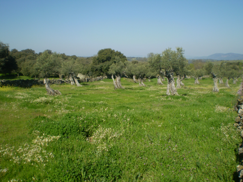 En todo el camino veremos antiguas tapias de piedra que delimitaban las fincas, chozos de pastores, etc. La vegetación está principalmente compuesta por encinas y sobre todo almendros y algunos olivos.