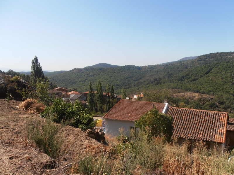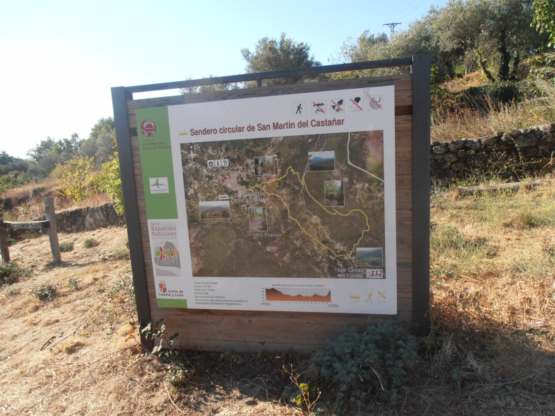 Se cruza la carretera que une San Miguel de Robledo y San Martín del Castañar con Las Casas del Conde obteniendo una maravillosa panorámica de San Martín y de la Peña de Francia.