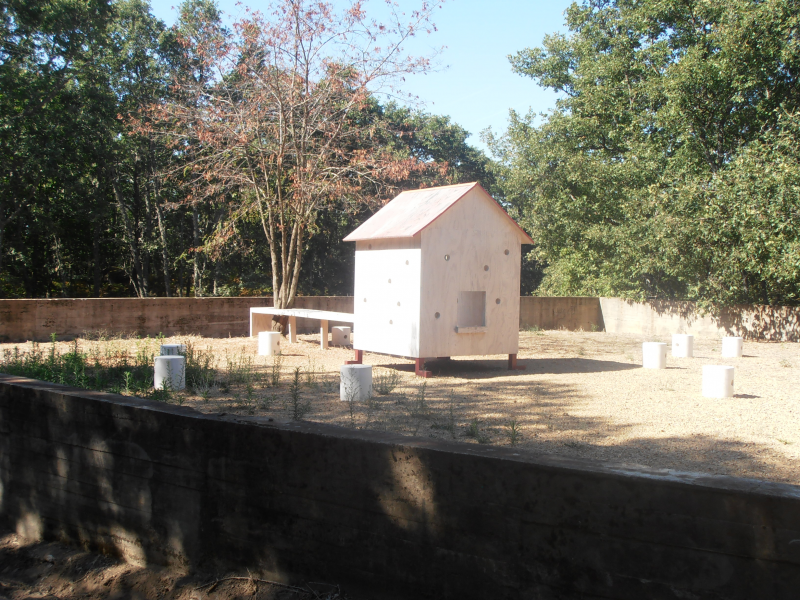 Cogemos un camino asfaltado que nos lleva hasta la siguiente obra de arte, "La Casa del Árbol. Abandonamos el magnífico lugar por un camino a la derecha hasta un desvío por una senda, para dar una puntada con hilo y alcanzar la siguiente obra "A Puntadas" del autor Luque López donde la naturaleza muestra su fuerza y su fragilidad para reparar lo roto. Apreciamos la siguiente escultura de autillos, lechuzas y mochuelos que habitan en el entorno del bosque sobre rocas y peñascos, dando lugar a la escultura "Mochuelos" de Pablo Amargo. Llegamos a la zona de Las Correas Arte sobre piedra en un maravilloso jardín natural, es lo que nos hemos encontrado antes de llegar a Las Casas del Conde.
