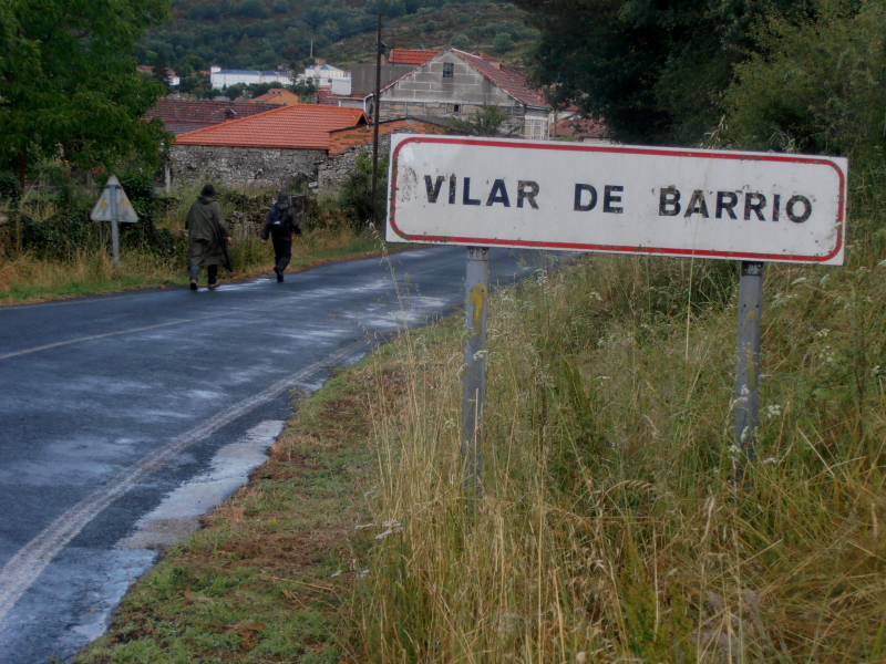 Abandonamos Alberguería a través de un camino de tierra que suele anegarse de agua con facilidad. Más o menos a 2,9 kilómetros en el monte Talarino, situada a 970 metros de altitud donde hay una gran Cruz de madera. Pasaremos por una zona de nombre O Veredo y a 1,5 kilómetros seguimos nuestro camino alternando con la carretera en constante bajada hasta llegar a la población de Vilar de Barrio. (1500 habitantes)