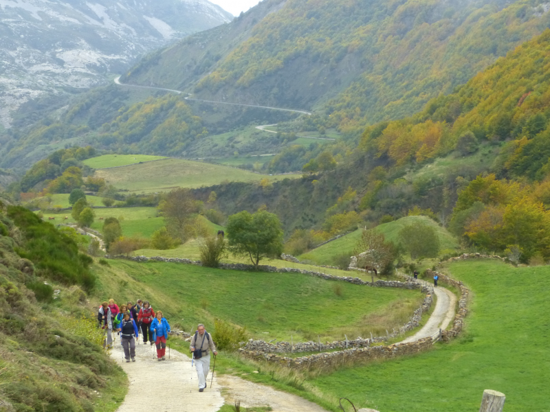Continuamos descendiendo por la pista, con unas vistas otoñales de gran belleza, hasta alcanzar la aldea de Villar de Vildas, donde finaliza nuestra ruta, y que recibió el premio al Pueblo Ejemplar de Asturias en 2004.