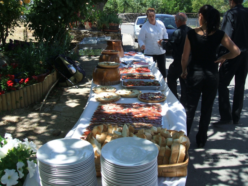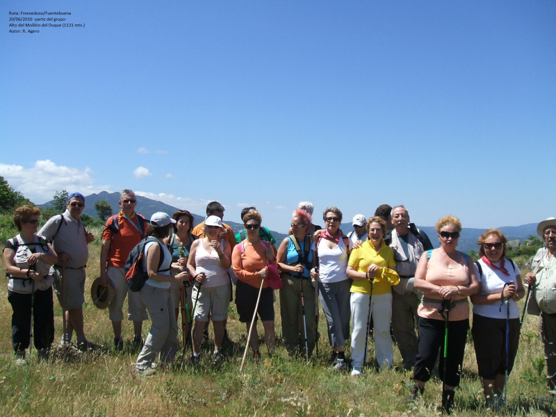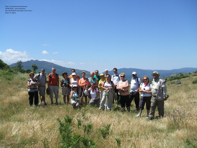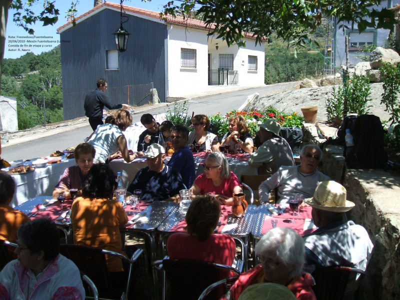LLEGADOS A LA VÍA FÉRREA NOS DIRIGIREMOS HASTA EL PUEBLO DE SANCHOTELLO DURANTE UNOS 4 KM, ALLÍ DEJAREMOS LA VÍA Y TOMAREMOS UNA PISTA QUE EN ASCENSO DE 1,5 KM Y CON UN DESNIVEL DE UNOS 200 MTS. NOS CONDUCIRÁ HASTA EL ALTO DEL "MOLILÓN DEL DUQUE" DÓNDE INICIAREMOS EL DESCENSO HASTA EL PUEBLO DE FUENTEBUENA (2 KM.) Y ALLÍ EN EL MESÓN DE LA "FLORA" DAREMOS BUENA CUENTA DE LAS VIANDAS QUE NOS TENDRÁ PREPAPRADAS, ENTRE ELLAS EL FAMOSO "CALDERILLO BEJARANO", PRECIO DEL MENÚ 15 EUROS PERSONA