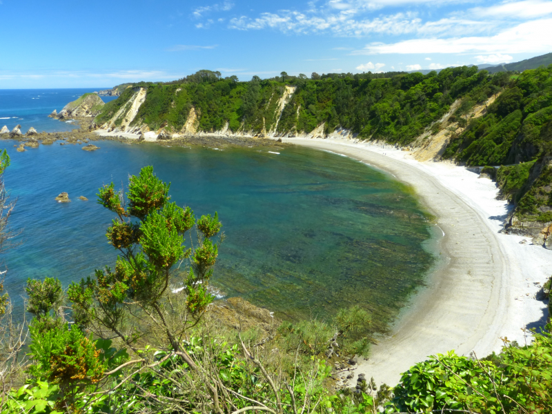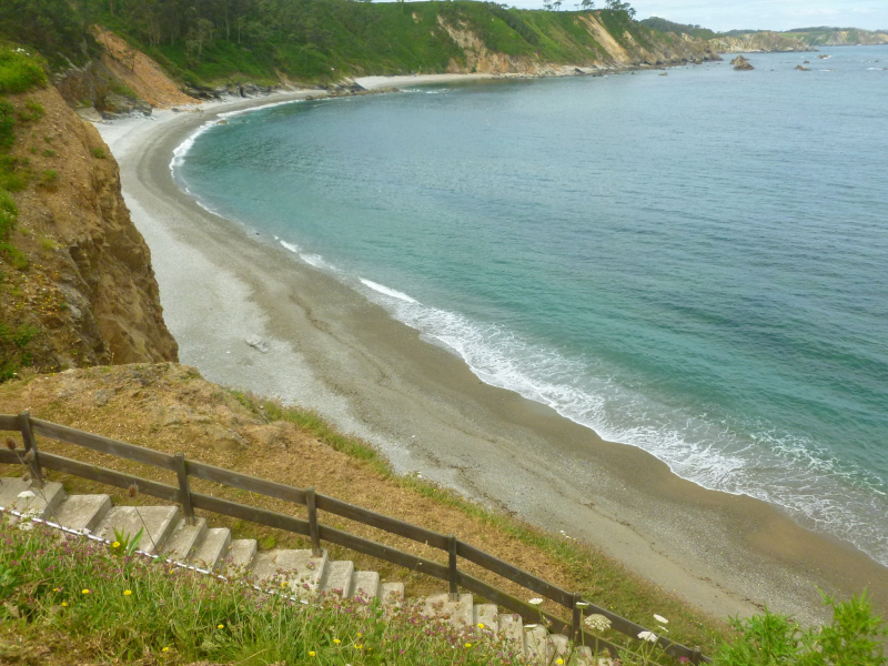 Continuamos, ahora la senda nos lleva hacia el interior, posteriormente a Castello, y a la playa de su mismo nombre, la mayor del concejo de El Franco. Playa bonita pero con suelo de cantos rodados y con rocas en el agua.