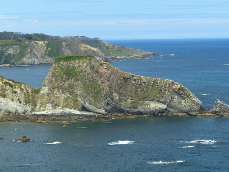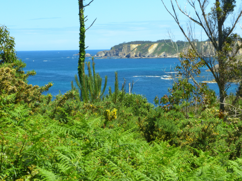 Situados en la parte alta, comenzamos a circular por la GR E-9 (tramo Ortiguera-Viavélez), en dirección oeste, pasando al lado de un mirador sobre los acantilados, en el que aún se conserva un pozo de aguas dulces que antaño abastecía al pueblo.