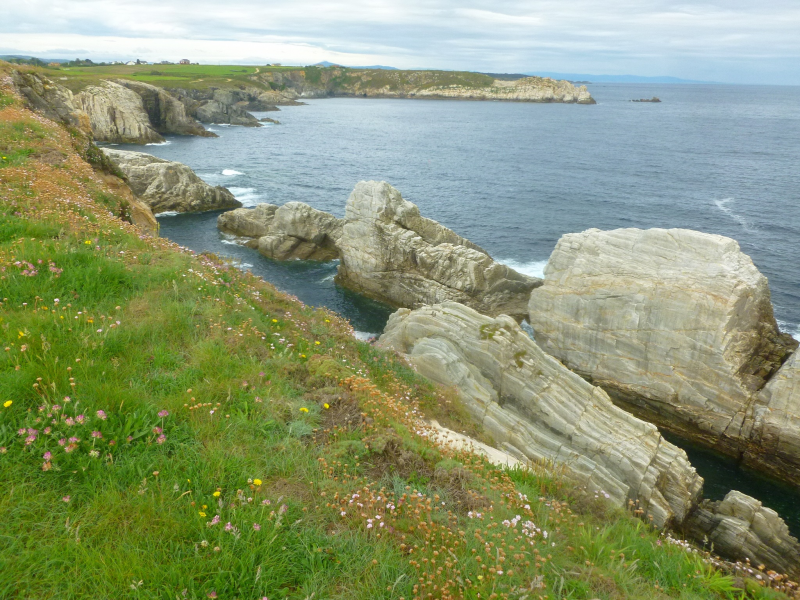 Salimos de Valdepares pasando por prados y la senda nos lleva de nuevo hacia la costa en una zona de acantilados, entre ellos, el cabo Blanco con espléndidas vistas de la costa.