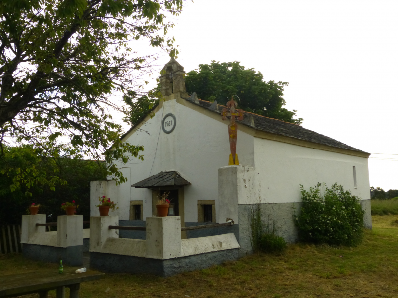 El camino continúa hacia el río Mernes atravesando zonas de pradera y llegando al núcleo de San Pelayo, donde se puede visitar su capilla.