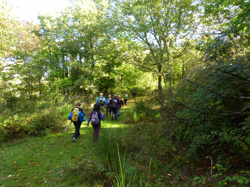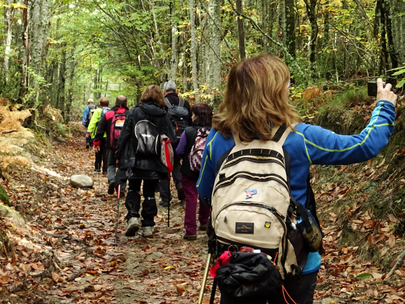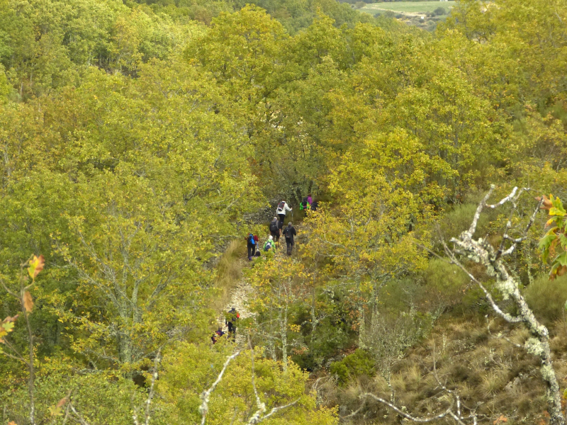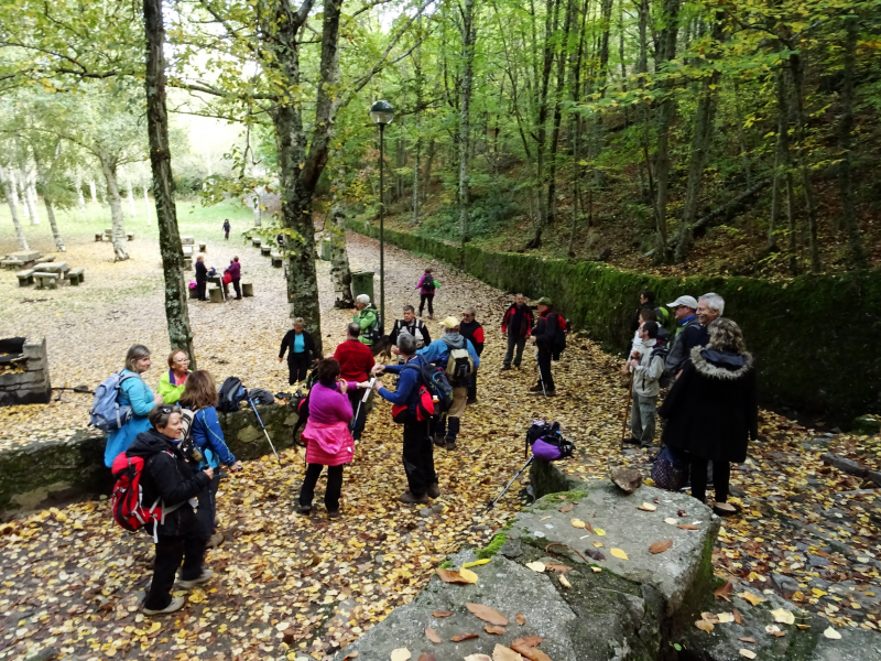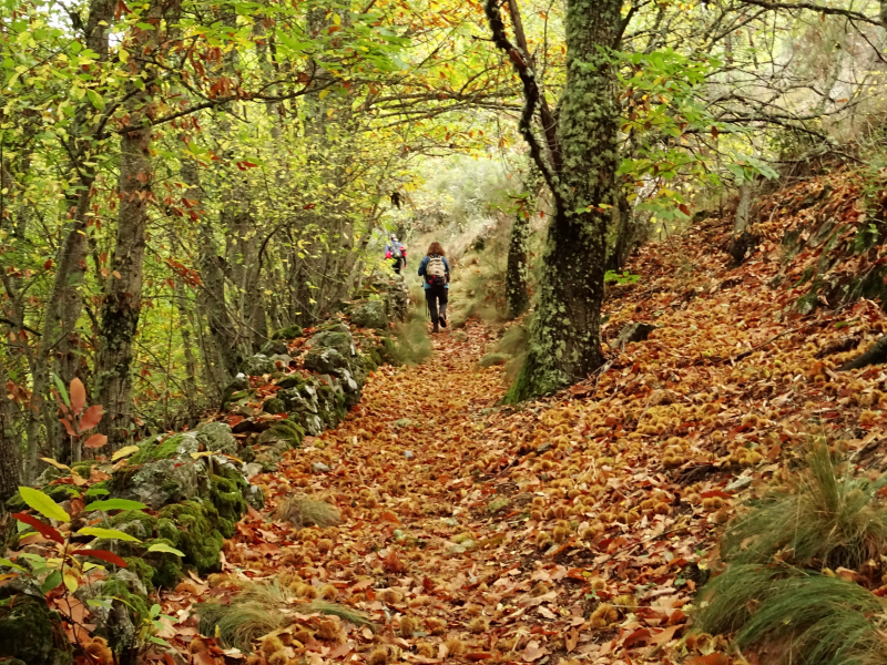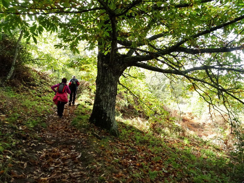 En la parte baja del pueblo, junto al campo de fútbol, buscaremos la calle Eras, donde deberemos tomar un sendero que se adentra en un bosque mixto, principalmente castaños, robles y pinos.