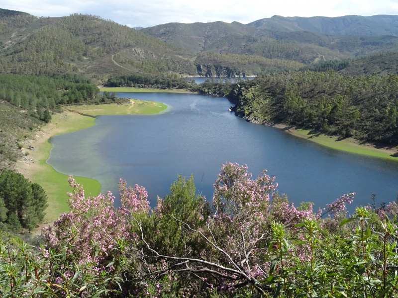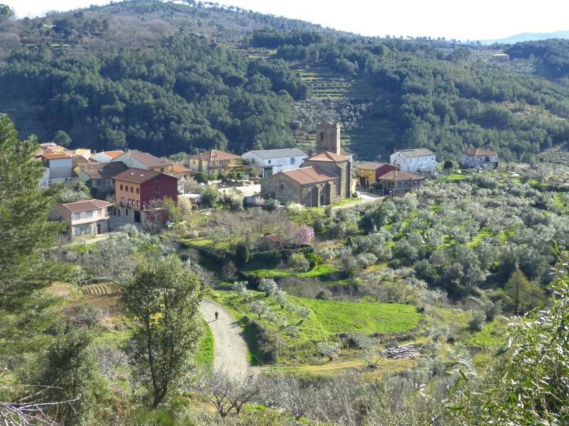 Comenzamos la ruta por la parte alta del pueblo de Herguijuela de la Sierra para seguir una pista, que bordea la Sierra de la Orconera, y que nos llevará hasta las ruinas del Convento del Santo Niño de Jesús de Belén, al que llegaremos tras cruzar un arroyo por un puente.