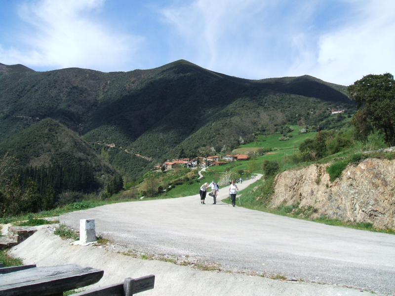 Se cruza esta aldea y por una cambera (camino de carros), en la que se disfrutará del contacto con la naturaleza, primero entre pinos y luego por bosque de robles y encinas, se llegará hasta la ermita de San Roque Km. 8,5 y a la localidad de Los Cos (Km. 10) 727 m. de altitud.