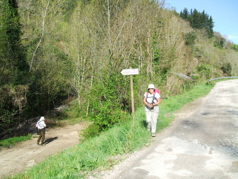 Tras unos 500 m. por dicho sendero, desembocamos en un camino más limpio por el cual descendimos hasta llegar una pista que nos llevó haste el pueblo de Cabariezo, donde de nuevo, misteriosamente, volvieron a aparecer las marcas de PR.