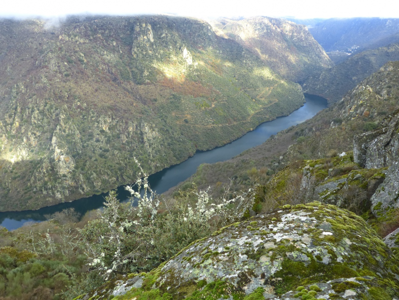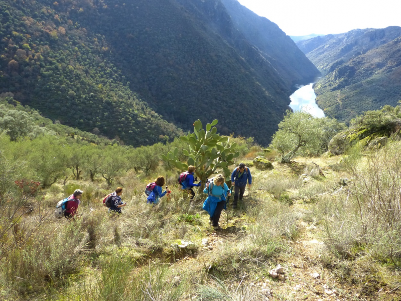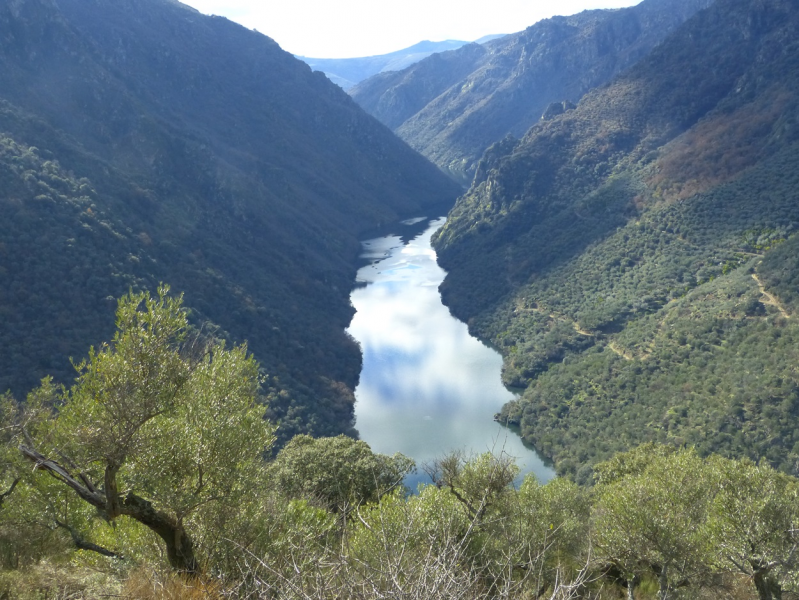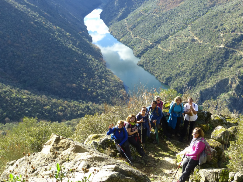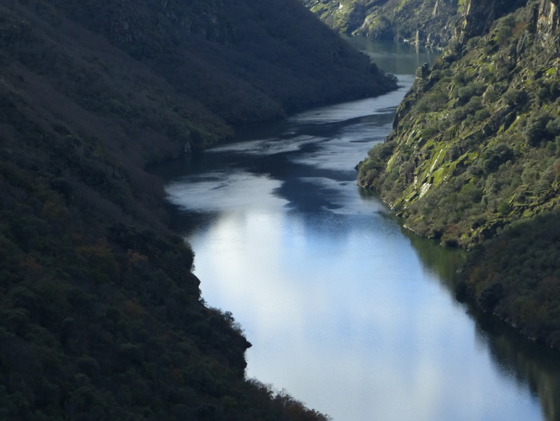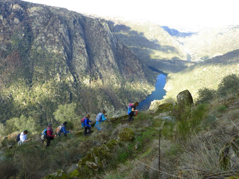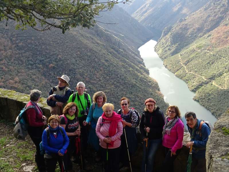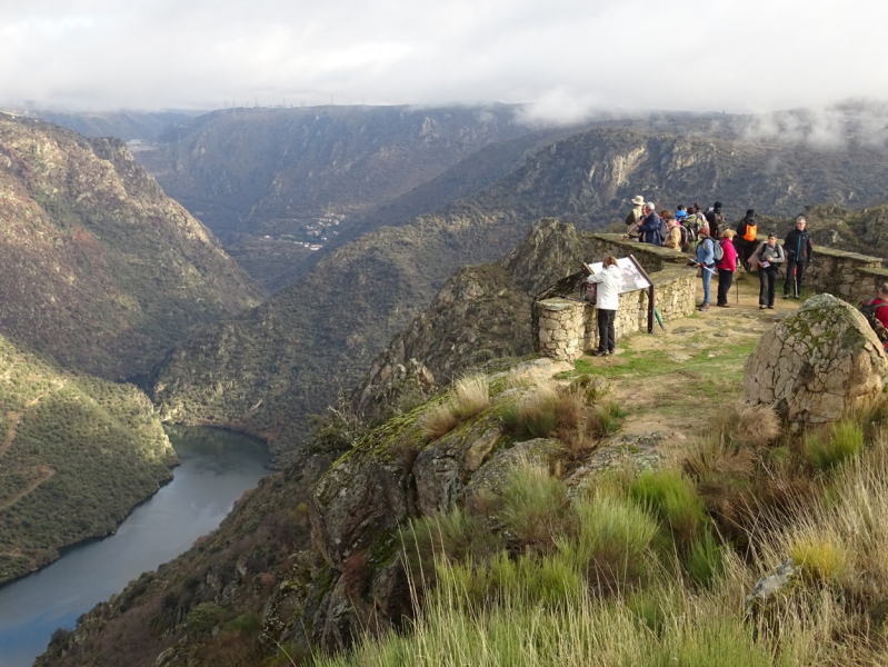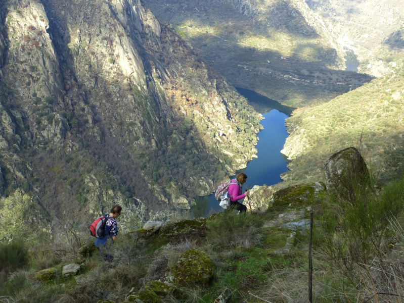 Las vistas son extraordinarias, con el río Duero abajo flanqueado, y enfrente la ribera portuguesa, con bancales de olivos. Hay zonas donde la roca baja hasta encontrarse con el agua, con paredes que llegan a los 500 m. Si nos fijamos podremos ver volar águilas, alimoches, numerosos buitres e incluso cigüeñas negras.