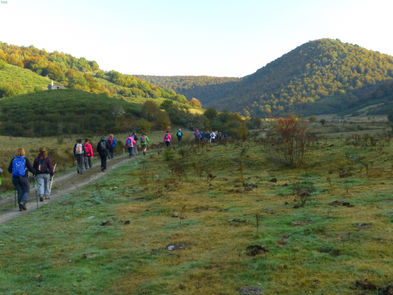 Durante el primer tramo de la ruta, atravesamos verdes prados flanqueados por suaves montañas cubiertas por espesos bosques de hayas.