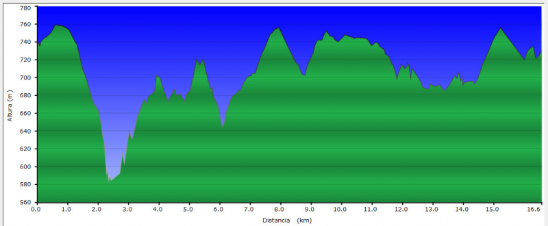 Desde el mirador de Peña Blanca (585 mt.), comenzaremos a ascender hasta llegar a la cota 752 mt. en el Km. 9,5.