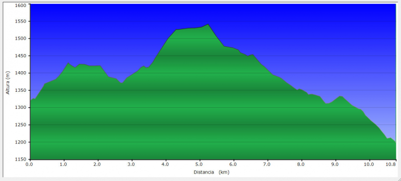 Junto al panel informativo dejamos a nuestra derecha una pista descendente que lleva a la localidad de Cueva, seguimos a la izquierda, pasamos una pequeña alambrada y realizamos una ligera ascensión para alcanzar la pista que hemos de seguir.