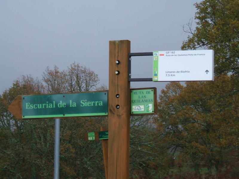 Aquí se puede ir en varias direcciones. A la izquierda iríamos a Escurial y Navarredonda de la Rinconada, y a la derecha a Linares de Riofrío.
