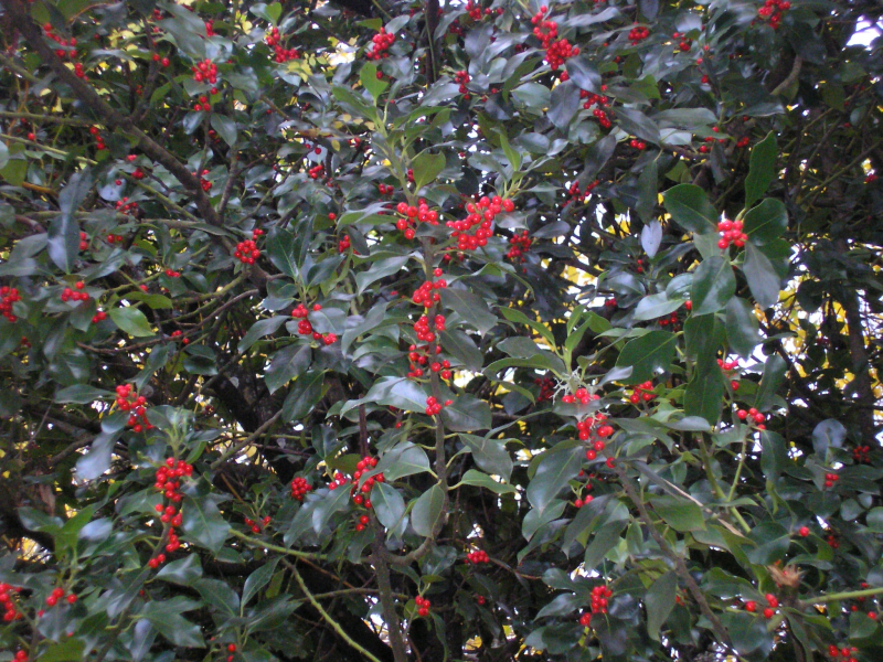 Al principio nos acompaña bosque de robles, pero a medida que seguimos descendiendo, nos adentramos en un precioso bosque de castaños, mezclados con espléndidos ejemplares de acebos con sus frutos rojos, avellanos, etc.