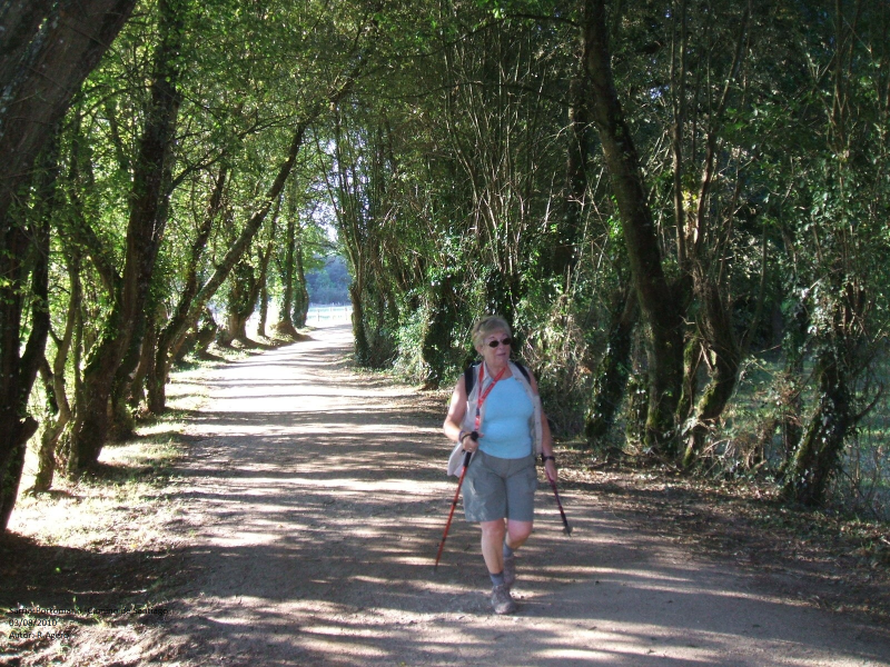 Comenzamos desde el puente del día anterior cruzando la calle Benigno Quiroga para girar junto a la Peregrinoteca. Una escalinata sube hasta la entrada de la rúa Mayor, a la altura de la iglesia del Salvador tomamos la calle de la Merced pasando por un mirador con un crucero hasta el monasterio de la Magdalena, La etapa desciende junto al muro del cementerio hasta el el río Celeiro. Tras vadearlo por el Ponte Da Aspera, el camino con constantes giros hasta cruzar la vía del ferrocarril, un duro repecho por camino con castaños sube hasta el lugar de As Paredes donde se asienta un castro prerromano. Desde aquí, por pista, nos acercamos hasta Vilei donde nos recibe una escultura en recuerdo a Don Germán Arias. A mano izquierda, vemos el área de descanso de Vilei, con máquinas: café, refrescos, pilas y un sello para adornar aún más la credencial.