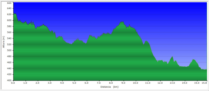 Los primeros 5 km. son en descenso, para seguidamente continuar 4 km. en ligero ascenso.