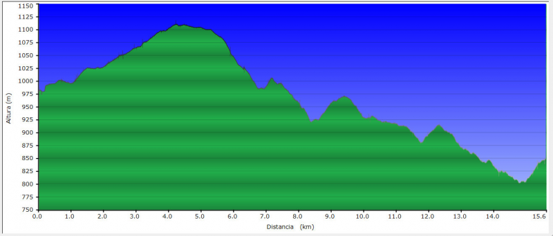 Toda la ruta, a partir del km. 4,5 es en suave descenso, a excepción de los últimos 700 mt. del final de la misma, que es en subida.
