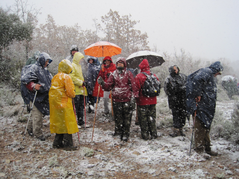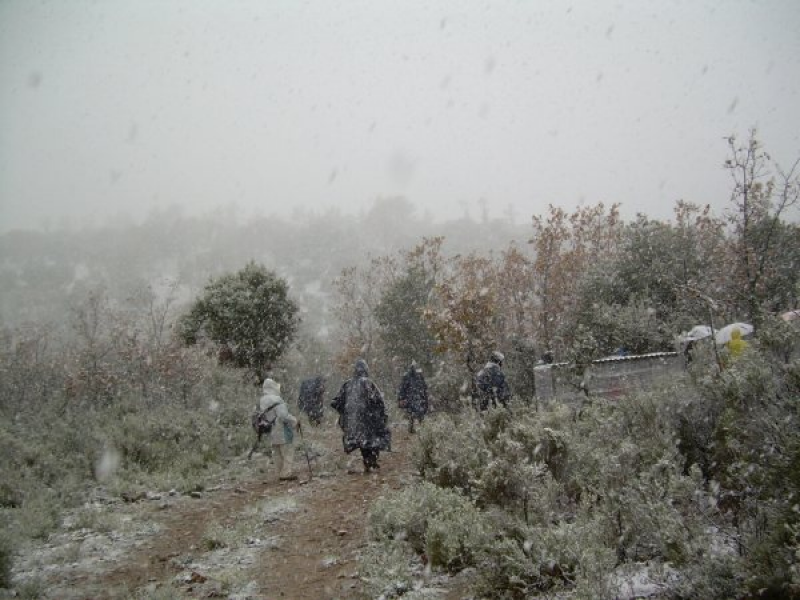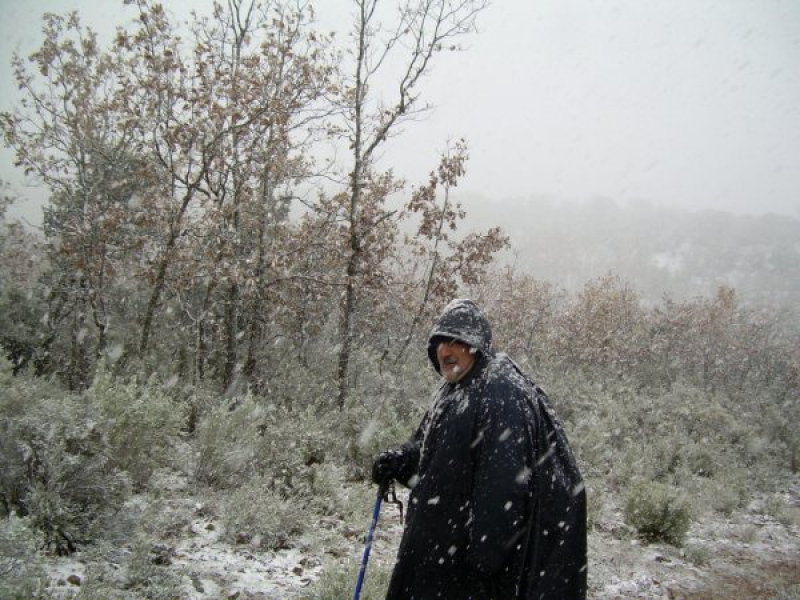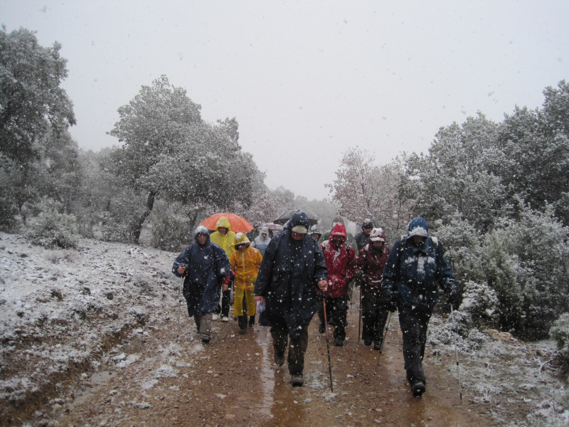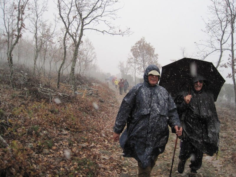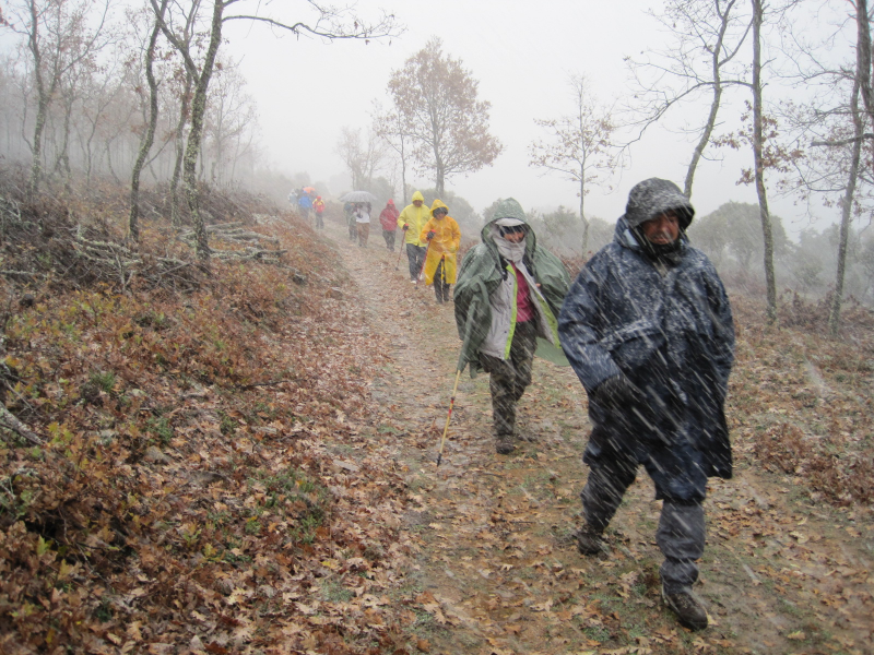 Esta era la ruta prevista, pero las inclemencias del tiempo en forma de nieve y lluvia nos aconsejaron a la llegada a Aldeanueva de la Sierra (Km. 8,5) dar por finalizada la misma.