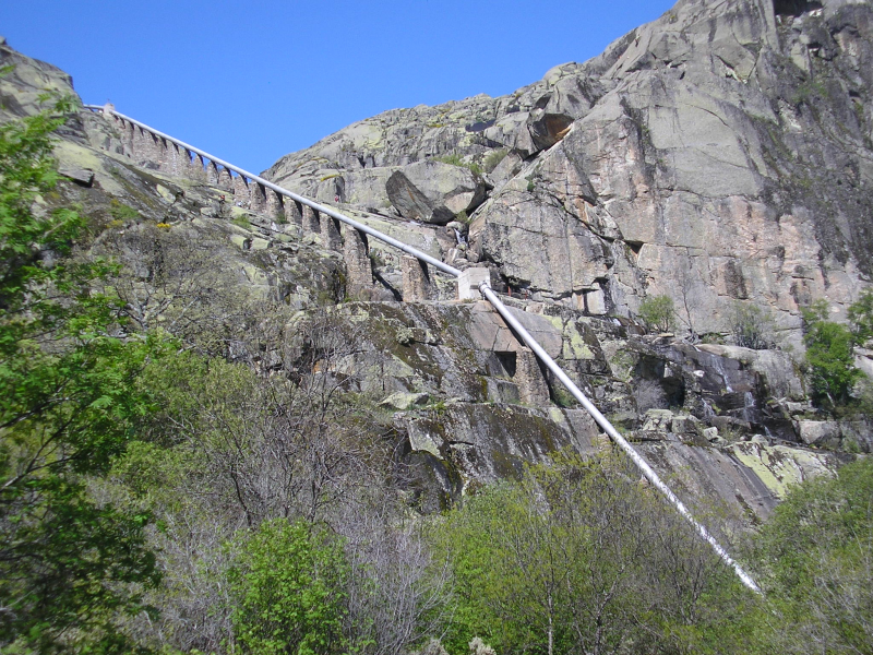 También se puede bajar al lado de la tubería que lleva el agua a la central eléctrica, pero hay que bajar a través de la roca, y temiendo que estuviera mojada y fuera algo peligroso desistimos de bajar por este itinerario.