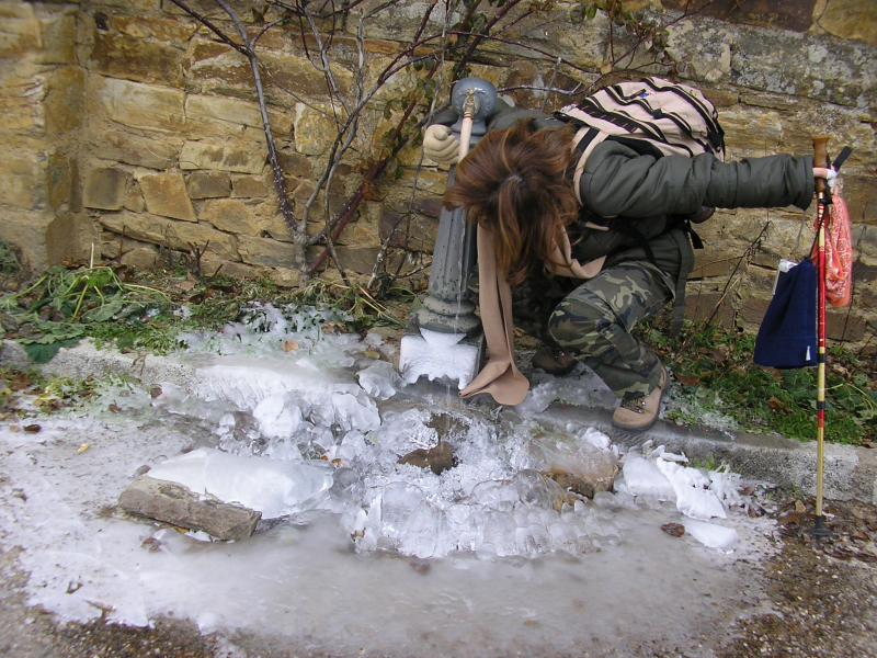 En suave descenso por la carretera que conduce a Castrillo de los Polvazares, el peregrino va dejando tras de sí la meseta sobre la que se asienta Astorga. La ermita del Acce Homo, a la salida y a la altura de Valdevieja, indica que nos encontramos en el buen Camino.