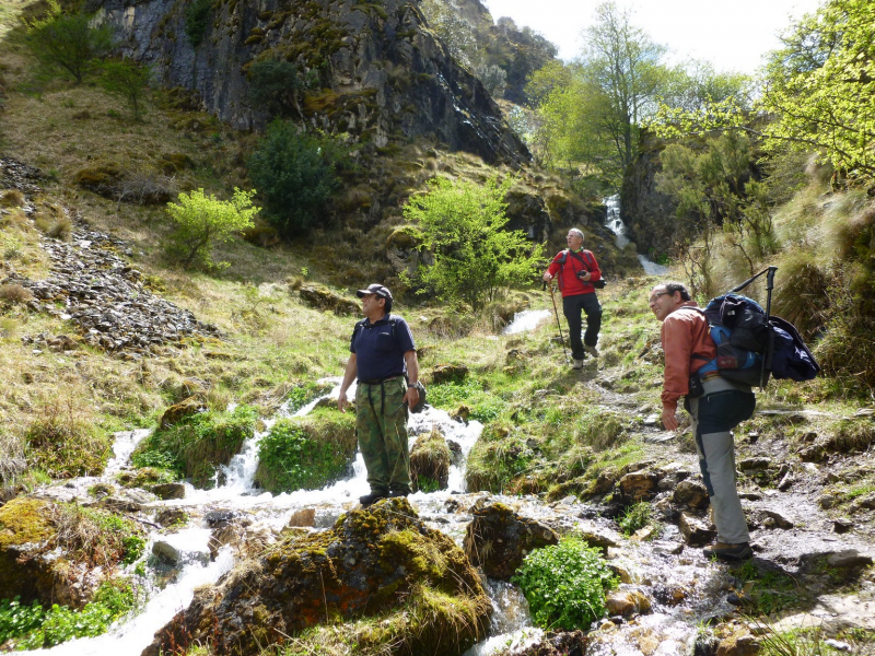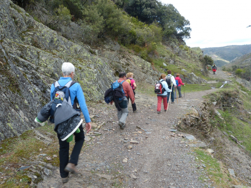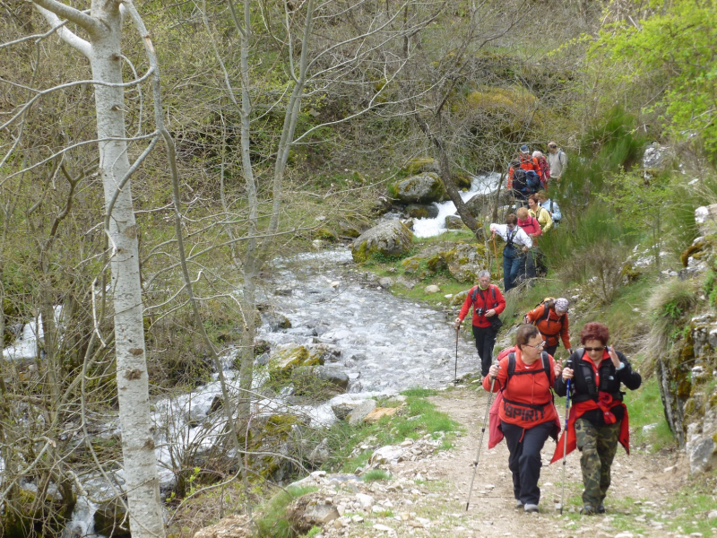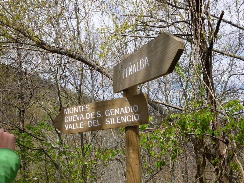 Salimos por camino señalizado que desciende entre huertos. Llegamos al río y ascendemos por la otra ladera hasta encontrar un sendero, por la derecha, que desciende hacia el próximo arroyo por el que seguimos. Si deseáramos visitar la Cueva de San Genadio seguiríamos subiendo por el camino de frente.