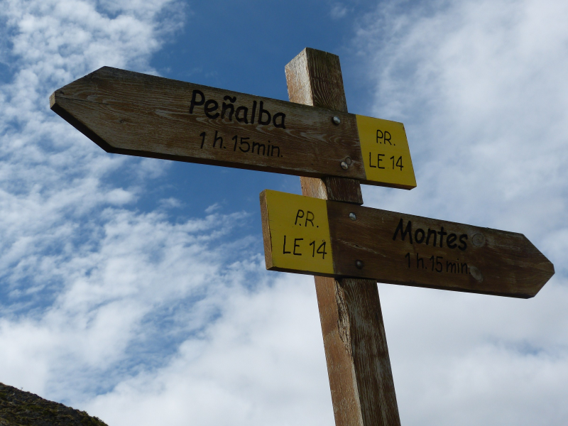 Pasamos junto a una tablilla que nos indicaba el tiempo estimado de la senda a Peñalba y a Montes de Valdueza, ambos 1,15 minutos.