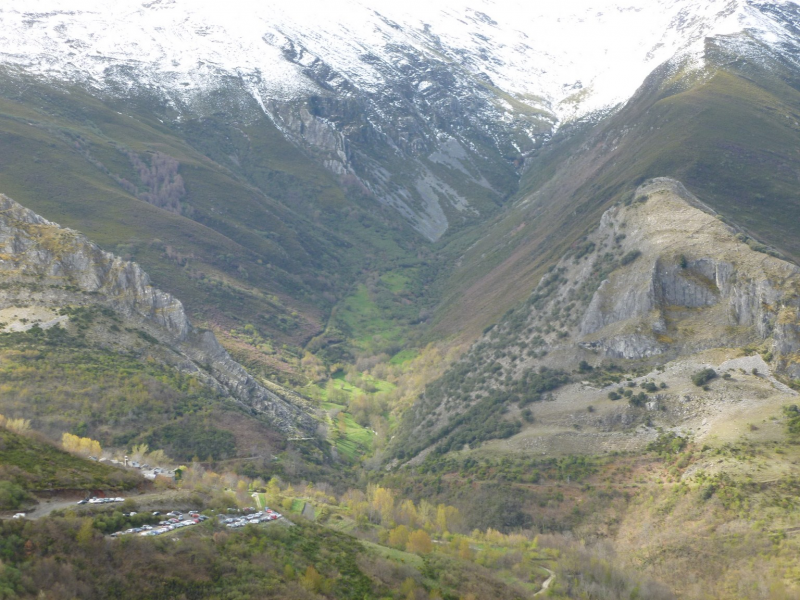 A medida que se asciende el paisaje va ganando en belleza. Abajo vemos Peñalba de Santiago y a la derecha las blancas montañas. En verdad, un paisaje difícil de superar.