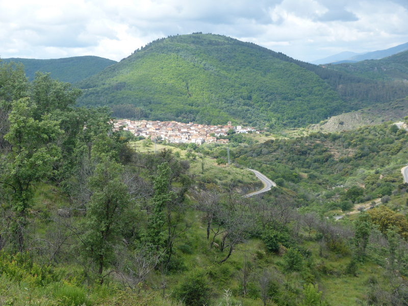 Continuamos por pista ya en bajada hacia San Esteban pasando por la zona conocida como Los Pajares, con preciosas vistas, Sierra de Béjar, los pueblos de Cristóbal, Santibáñez de la Sierra, San Esteban, las montañas que circundan a la Peña de Francia, etc.