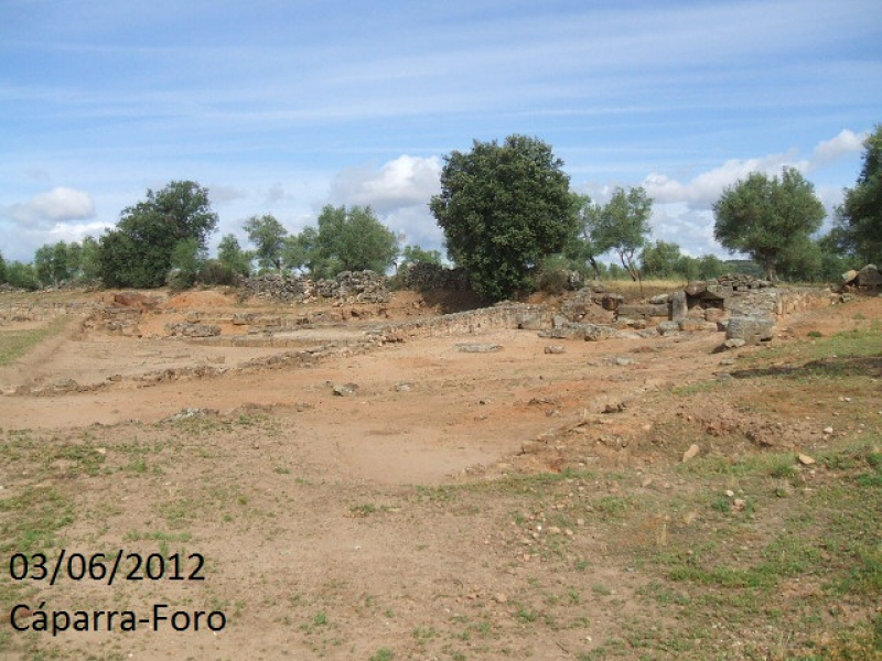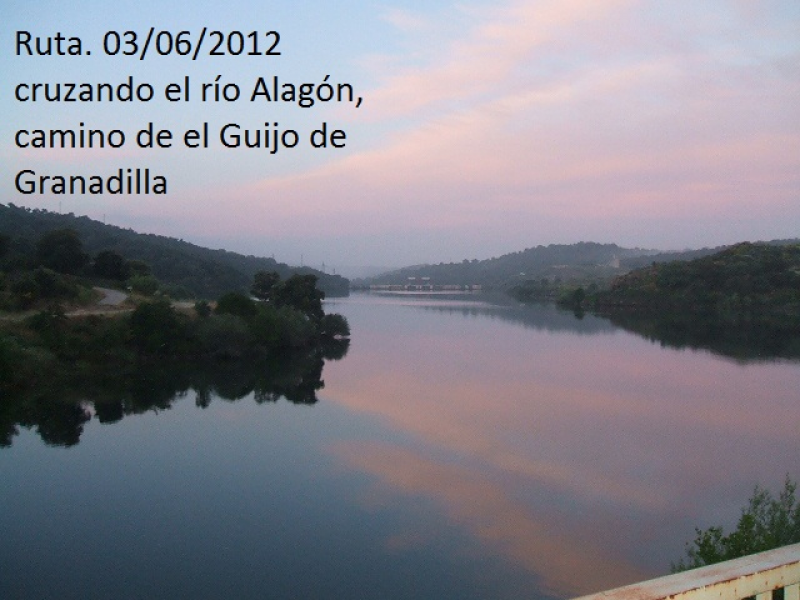 Esta ancha pista desemboca en un tramo asfaltado que se sigue de frente durante unos 300 mts, punto en el que se confluye con la Vía de la Plata, giramos hacia la derecha y tras recorrer unos 600 mts por la Vía de La Plata llegamos y pasamos debajo del arco de Cáparra, continuamos por esta Vía de La Plata hasta que veamos las indicaciones de la PR-CC 201 (blanco y amarillo), que nos conducirá a El Pontón (puente romano del S.II d.C., hoy semisumergido por las aguas del pantano ó salto de El Guijo)y bordeando la ribera izquierda llegaremos a el Guijo de Granadilla, final de la etapa