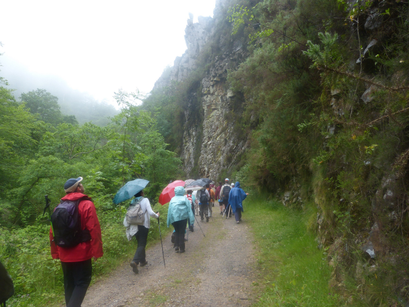 El camino continúa ascendiendo por desfiladero a través de un hermoso bosque.