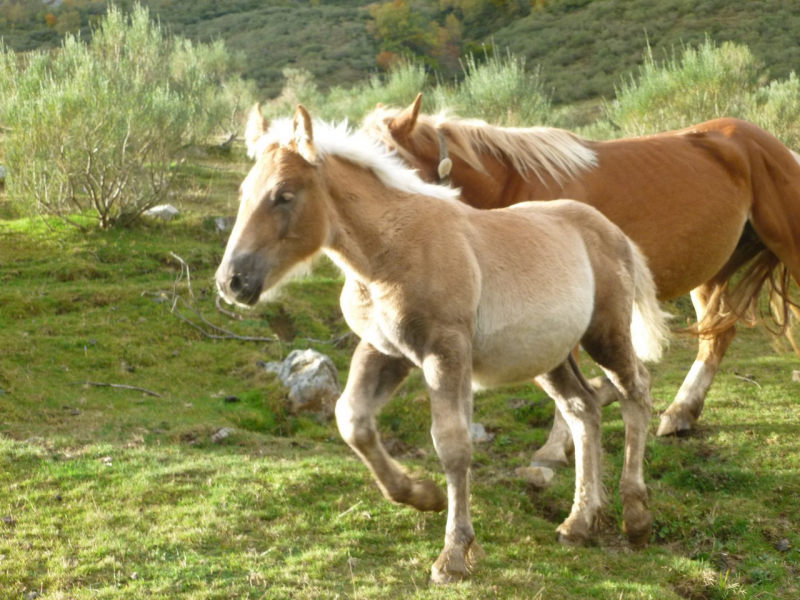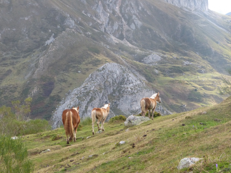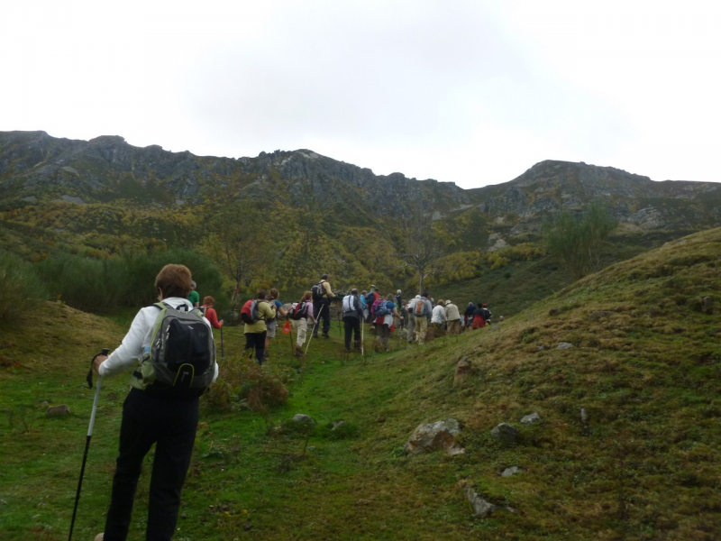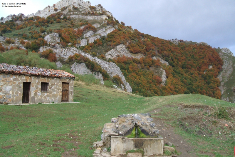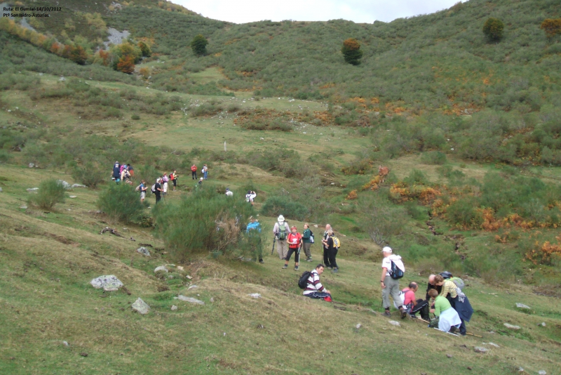 Una vez en la campera, abandonamos el bosque debiendo tomar el camino señalizado entre carrascos y piornos por la margen derecha del arroyo hasta la campera del Gumial, emplazado en el pequeño circo que forman el Picu Fuentes y el Noales.