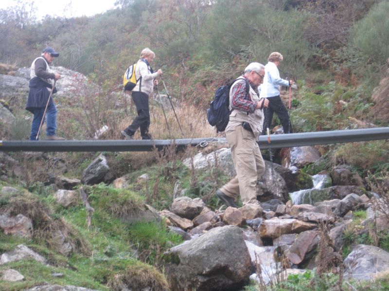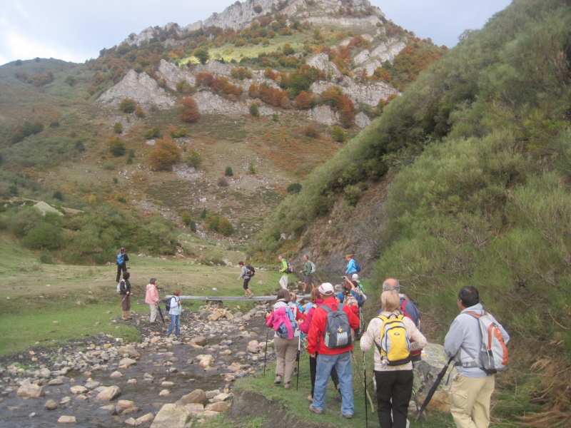 Pasadas éstas, nos dirigimos al río Braña, que vadeamos por un puente de madera, conectando más allá con la pista de servicio (cota de 900 m).