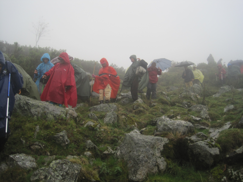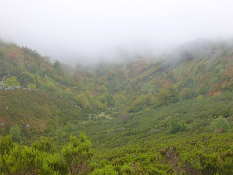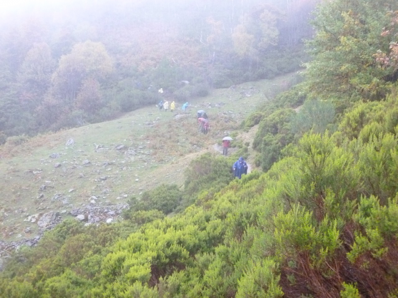 A partir de la collada, el tiempo cambio bruscamente y duarante gran parte del descenso nos acompañó una incesante lluvia y niebla que no nos dejó disfrutar de la belleza insuperable que nos rodeaba.