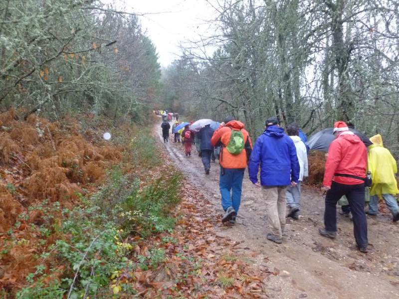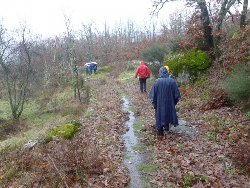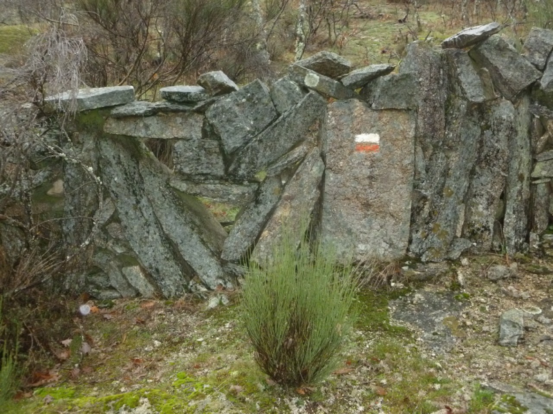 Una vez terminado el descenso, muy próximo al Arroyo del Verdugal, el camino continúa serpenteando ahora ya en una subida bastante pronunciada. Entre lanchas de piedra, viñas y bosque llegamos a una pista ancha que tomamos a la izquierda.