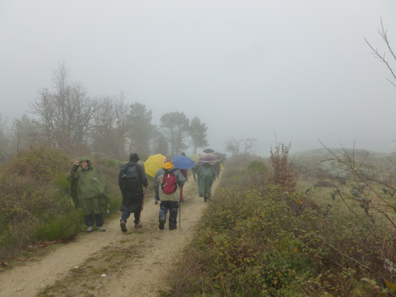 Este camino nos adentra de nuevo en un bosque de pinos y otras especies con una espléndida panorámica del valle del Alagón con la Sierra de Béjar al fondo. Comenzamos a bajar por un camino de curvas, adentrándonos ligeramente en el valle por su ladera izquierda. Esta maravillosa bajada entre robles, jaras, viñas, pinos, eucaliptos y otras especies propias de vegetación de clima mediterráneo, nos lleva por un camino que conserva aún parte de su antiguo empedrado tradicional.