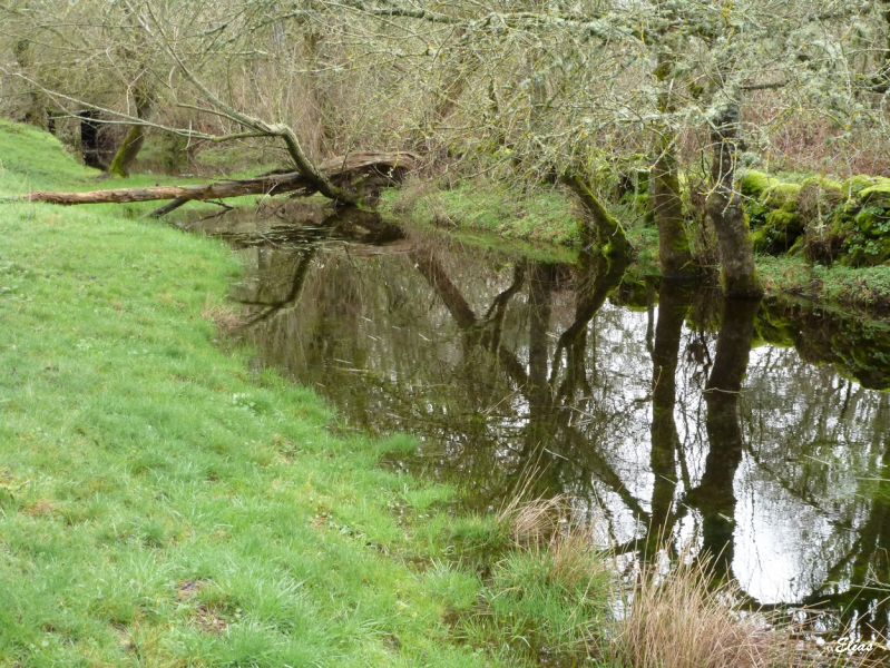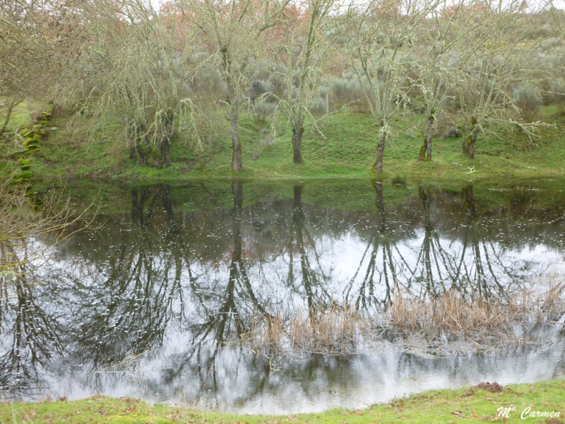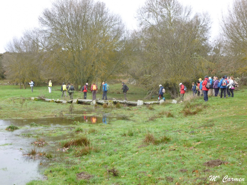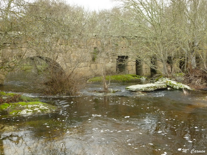 Seguimos siempre por la margen derecha del río, para llegar una carretera que cruzaremos, continuando el curso del río, hasta desembocar en un grupo de casas donde hay un molino. Aquí para continuar habría que cruzar a la otra margen por un puente.