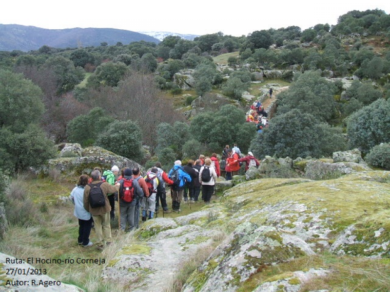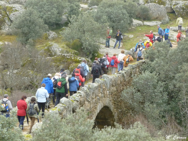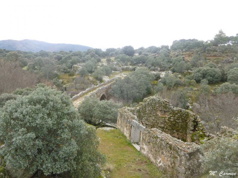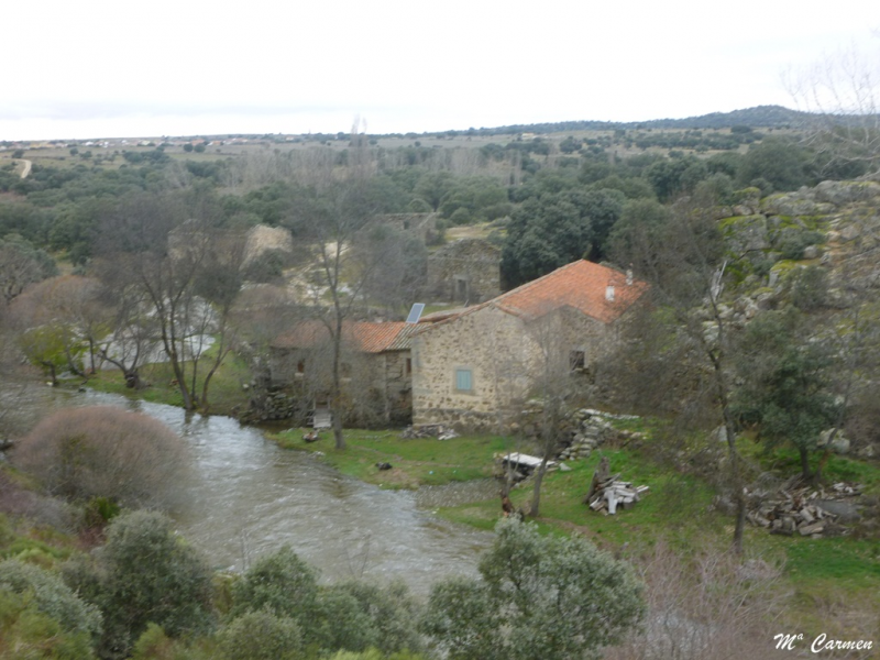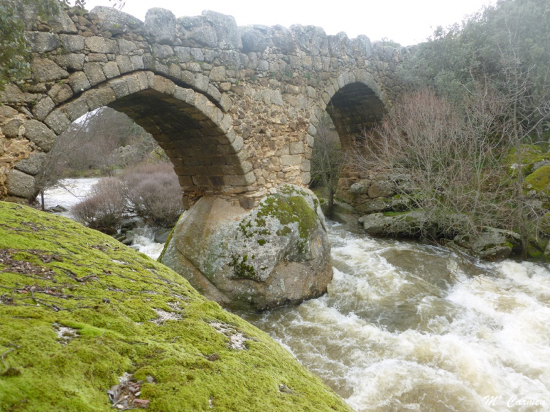 Una vez cruzado el río por el puente antes indicado, la senda discurre por la margen izquierda del río entre piedras berroqueñas y encinas, caminando siempre en paralelo al río, iremos ganando altura; a partir de este tramo, el río corre encajonado y a cada paso más embravecido hasta perderse entre grandes bloques de granito, para reaparecer unos metros más adelante manso y apacible.