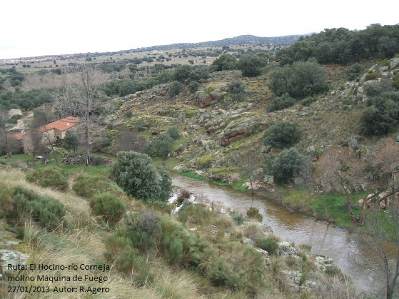 El camino poco a poco pierde altura a medida que se abre el valle, pasamos por el molino de la Máquina de Fuego (cota 920m.), en este molino-vivienda son de mención los cárcavos (hueco en que juega el rodezno (rueda hidráulica) del molino ya que son de medio punto y ejecutados con dovelas de cantería.