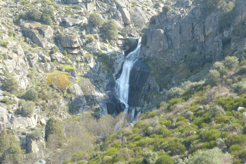 Seguimos por camino a veces escondido por la maleza, que nos dejará, después de un trecho descendiendo, en el paraje conocido como Berrocal del Oso, para poder divisar la cascada de "Lastras de Aguas Bravas", que forma el Arroyo de la Ribera en su caída hacia el río Duero.