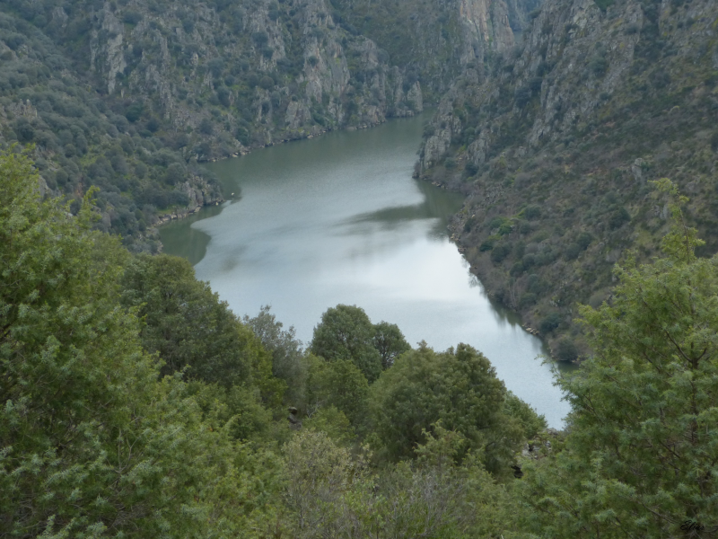 Este tramo no está marcado y solo encontramos algún hito y un sendero que a veces se pierde entre la vegetación, por lo que hay que orientarse siguiendo nuestra intuición, por la margen izquierda del Duero, a cierta altura, lo que nos permite unas panorámicas espectaculares, hasta llegar a un pequeño arroyo, que al remontarlo desemboca en una pista.
