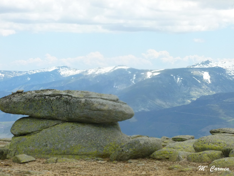 Por un lado la corona de picos del circo de la Laguna del Barco, Sierra Llana, las cumbres próximas a Cinco Lagunas, y otros picos del Macizo Central, que ya habéis visto desde el inicio de vustro recorrido, y en la otra vertiente: un cortado de doscientos cincuenta metros sobre la pradera pantanosa (antigua laguna colmatada, imaginamos) donde recoge aguas el río Becedillas, y una amplia visión con la sierra del Carrascal, el Berrueco y la planicie salamantina. Sosegad vuestro espíritu con la contemplación silenciosa, o incluso devota, de la maravilla.